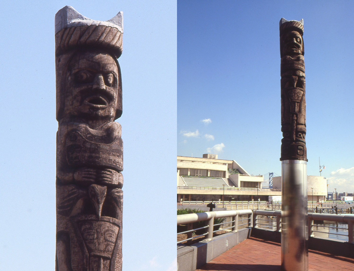 Sculpture of the International Sculpture Garden at Penn's LandingThe Na̱ʼwiti House Post (c. 1850) was acquired by aPA in 1978 for inclusion in its former International Sculpture Garden at Penn’s Landing, conceived as part of the planned 1976 U.S. Bicentennial celebrations. It was displayed outdoors at Penns Landing until 1998, when it was placed in storage along with other artworks in the collection due to developments along the waterfront.